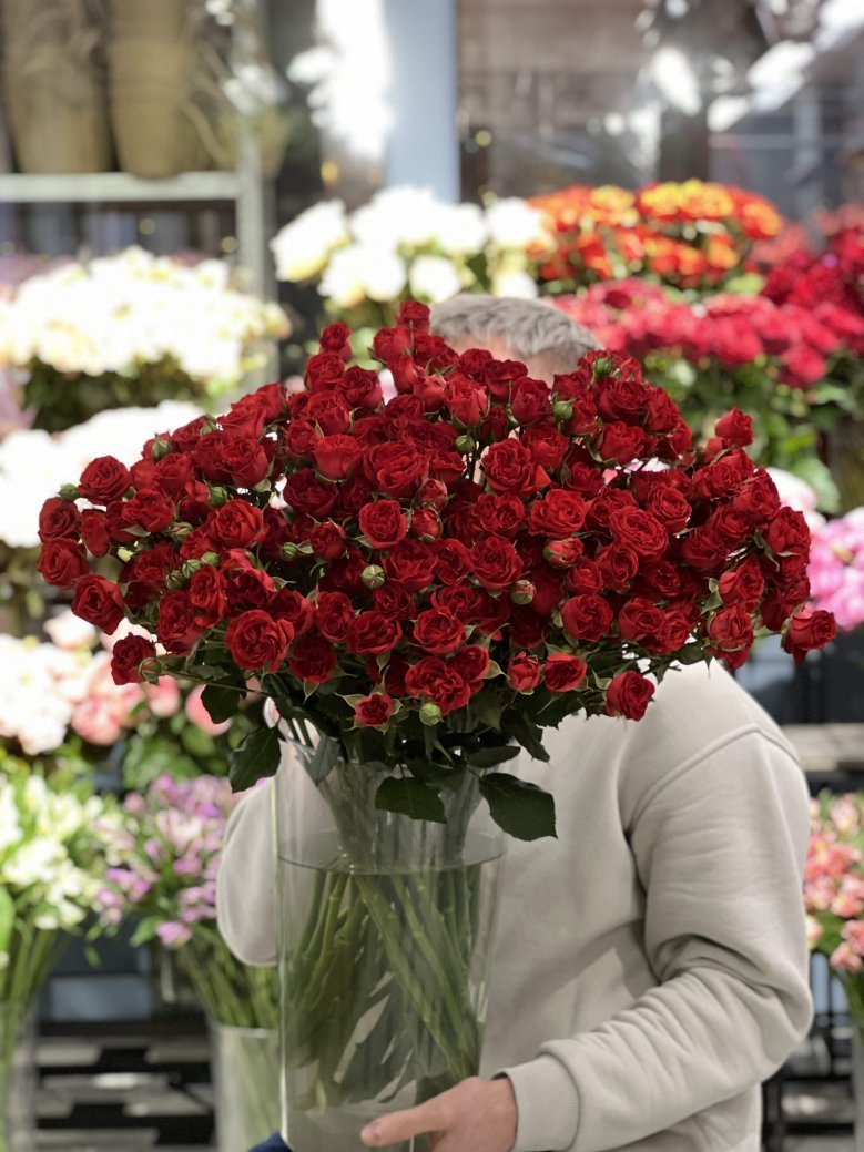 Монобукет из кустовой розы Thats Red Jewel (Зет ред джевел)