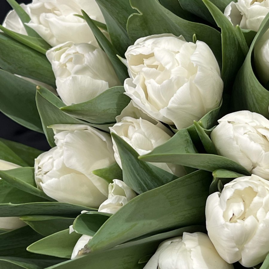 Монобукет из 25 белых пионовидных тюльпанов
