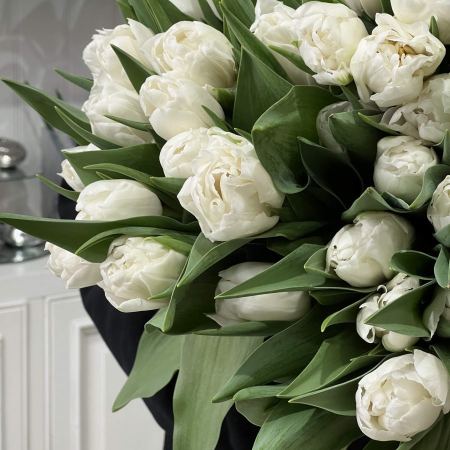 Монобукет из 55 белых пионовидных тюльпанов