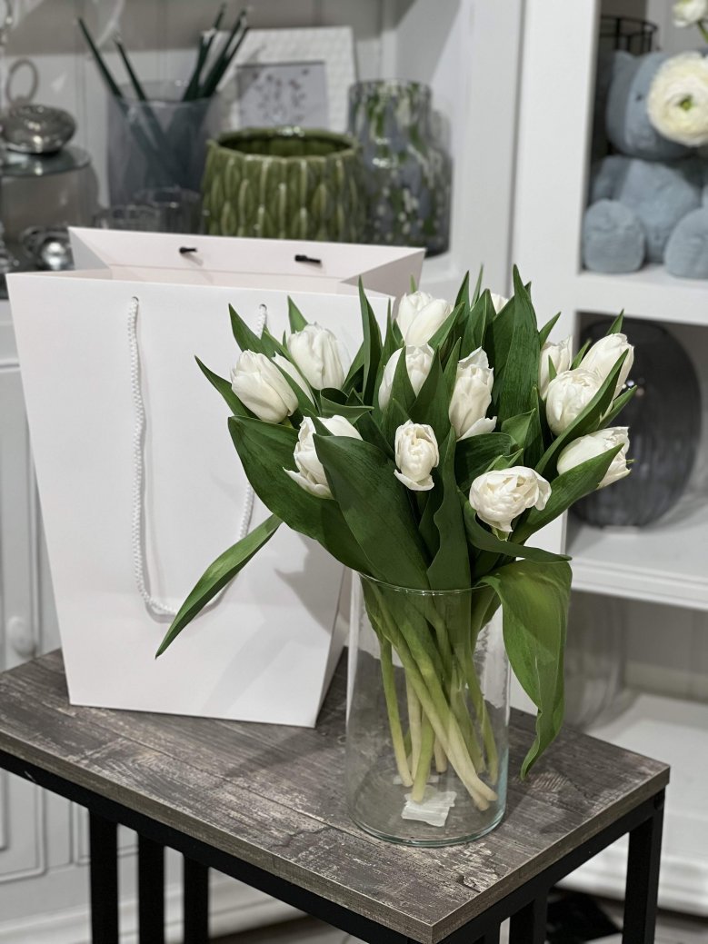 Тюльпаны пионовидные белые+ваза