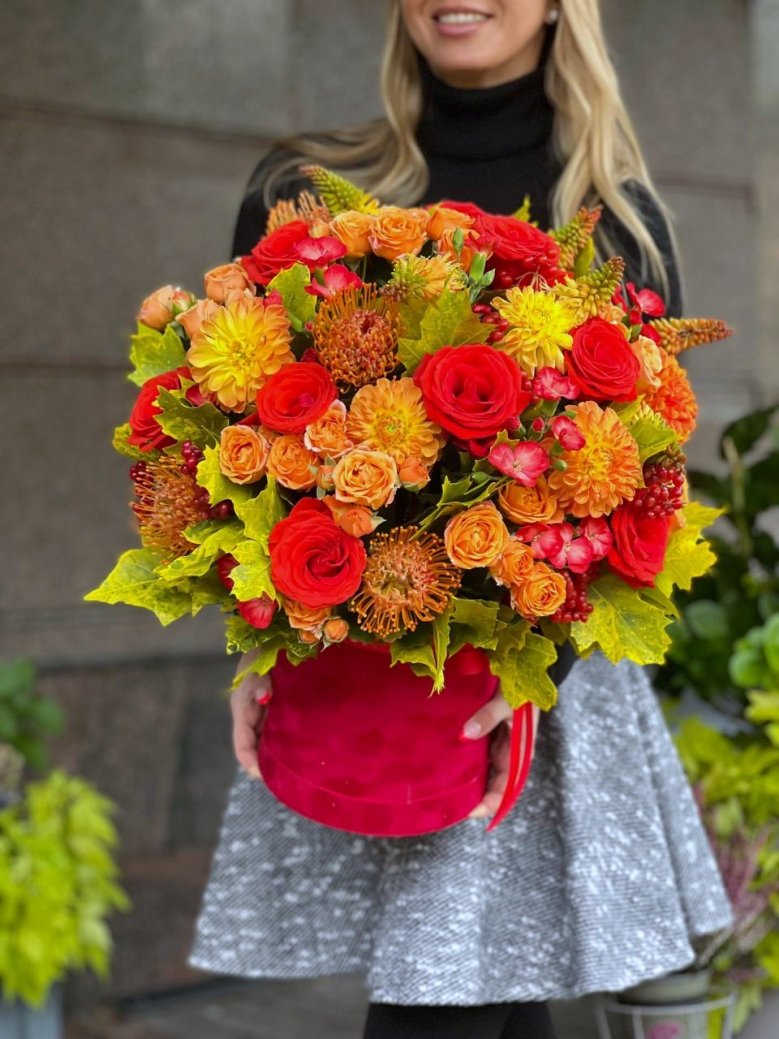 1. Каждый букет уникален и имеет сезонность, поэтому он может отличаться от того, который вы видите на картинке. Мы можем создать композицию в подобном стиле и цвете.
