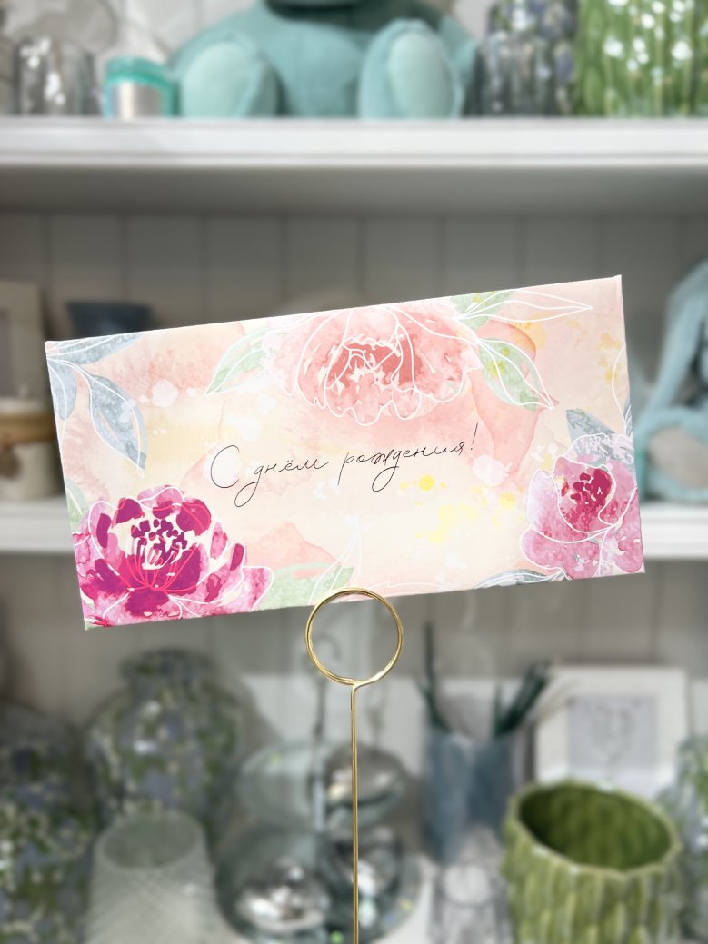 Коверт для денег «Цветы " в ассортименте Вы можете заказать на сайте салона Цветочное изобилие. Цена 400 руб.