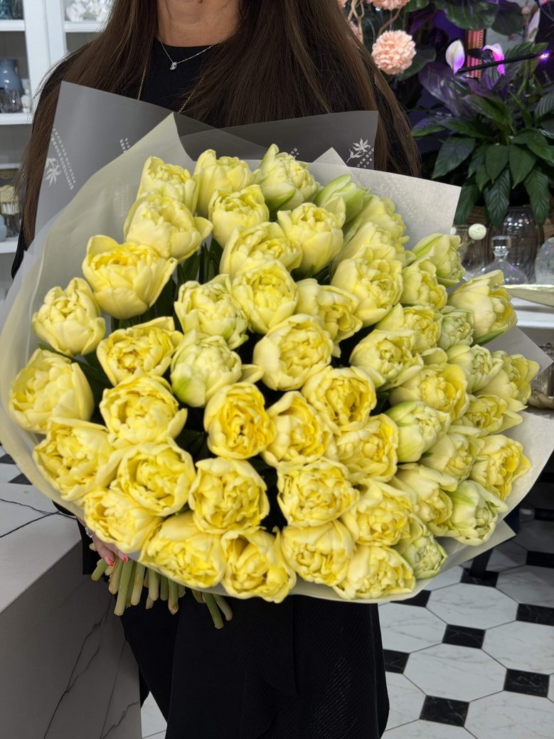Монобукет из 51 нежных кремовых пионовидных тюльпанов