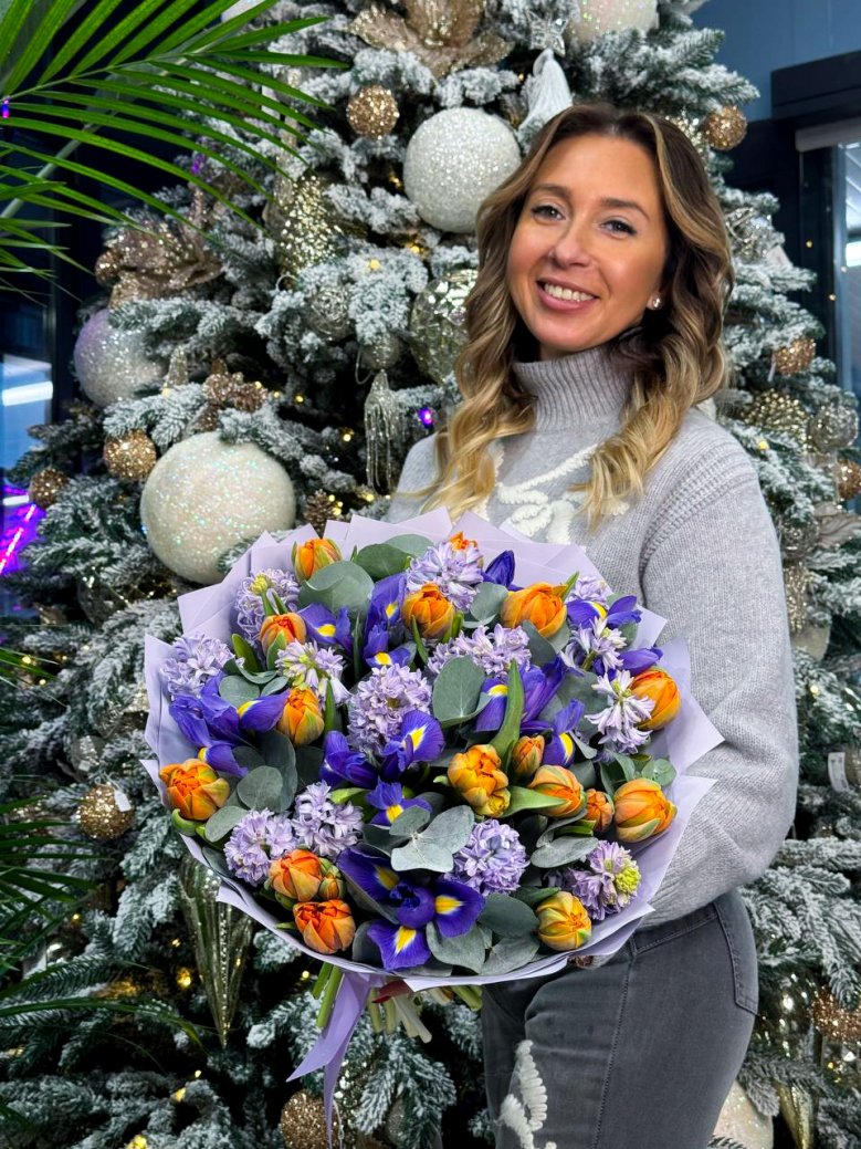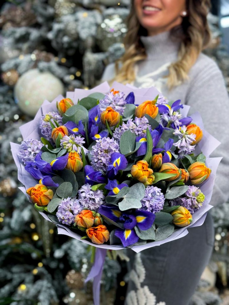 Состав: ирис, гиацинт, тюльпан и эвкалипт