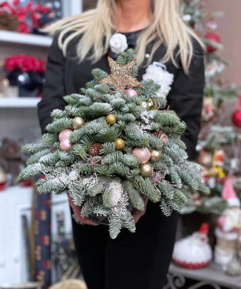 Корзиночка цветов — пионовидные розы, эустомы, ранункулюсы и хелеборум