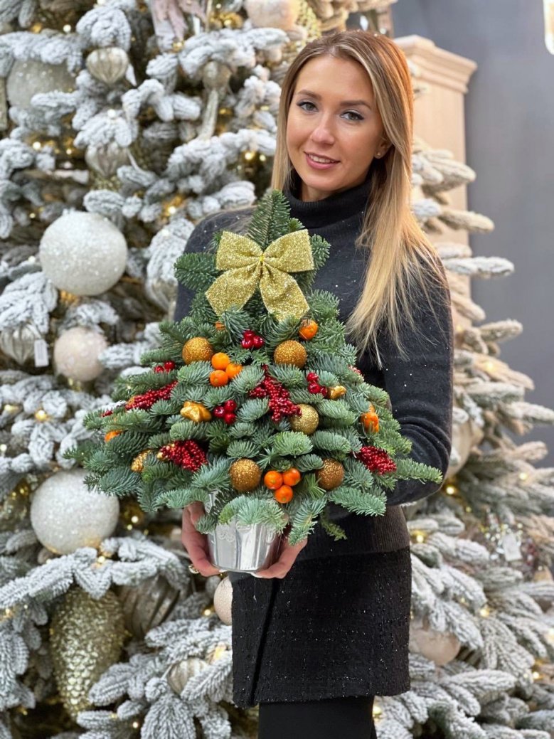 Корзиночка цветов — пионовидные розы, эустомы, ранункулюсы и хелеборум