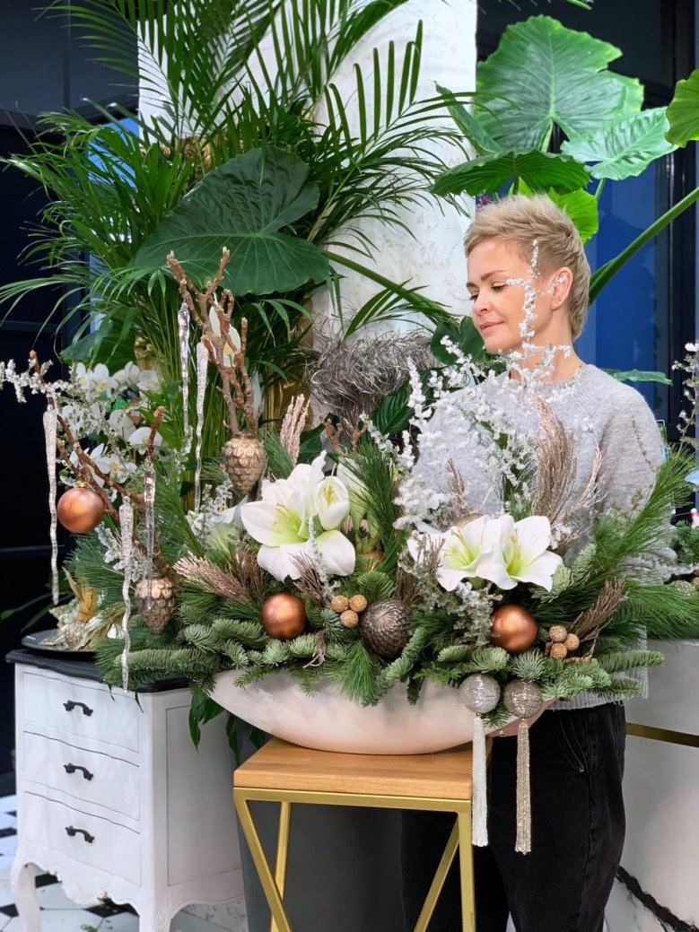 Состав: лапник голубой датской ели (нобилис), сосновые ветки, магнолия и декоративные новогодние украшения