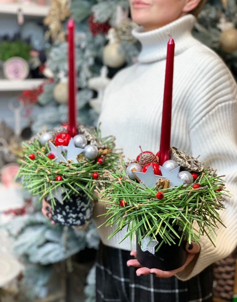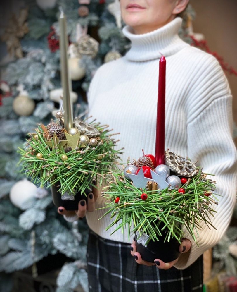 Праздничная композиция займет почетное место в центре стола и наполнит пряным ароматом корицы комнату. Свечи в сердце нее озарят Вас и Ваших близки светом в новогоднюю ночь, чтобы вы успели загадать свое самое сокровенное желание под бой курантов.
