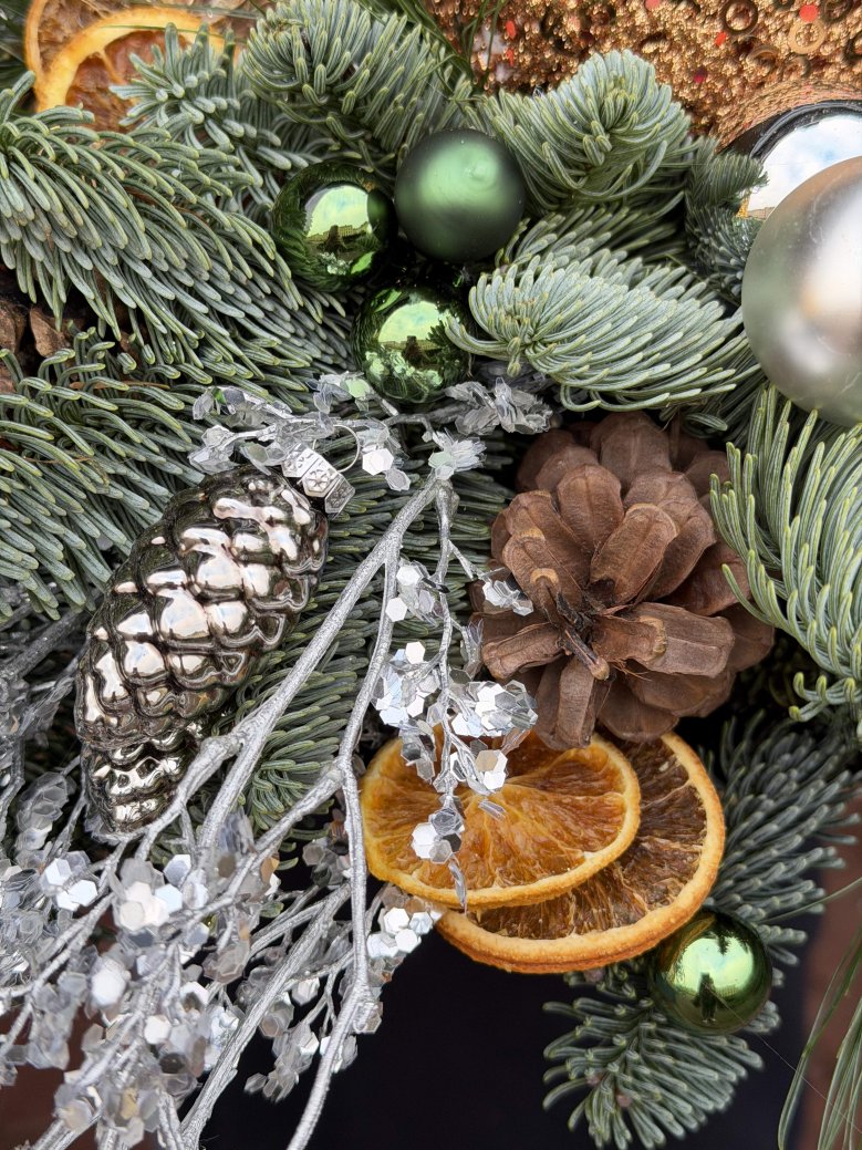 Состав: натуральная датская пихта, свечи и декоративные новогодние украшения