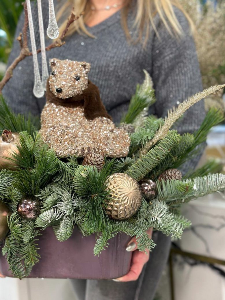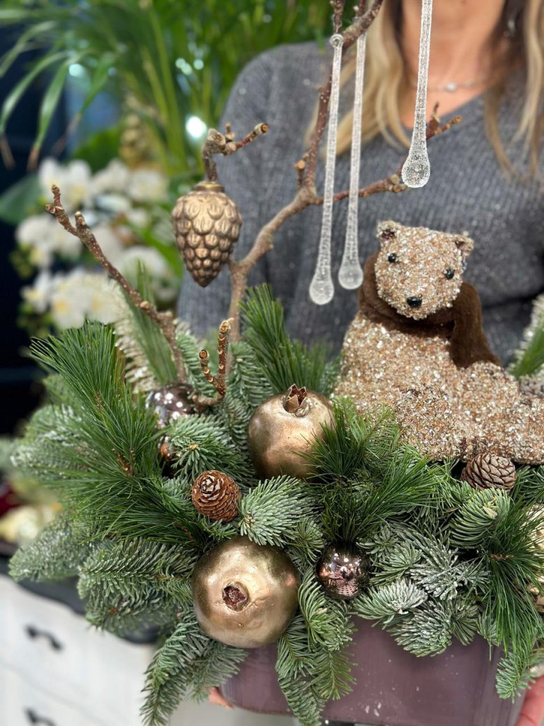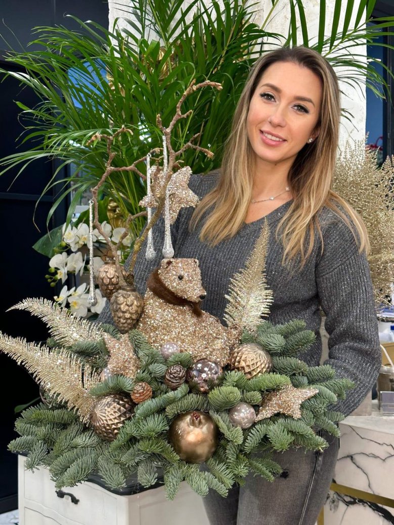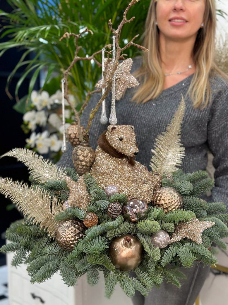 Состав: лапник голубой датской ели (нобилис), сосновые шишки и декоративные новогодние украшения