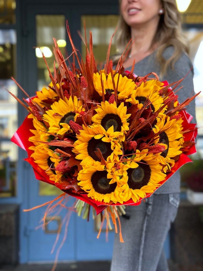 1. Каждый букет уникален и имеет сезонность, поэтому он может отличаться от того, который вы видите на картинке. Мы можем создать композицию в подобном стиле и цвете.