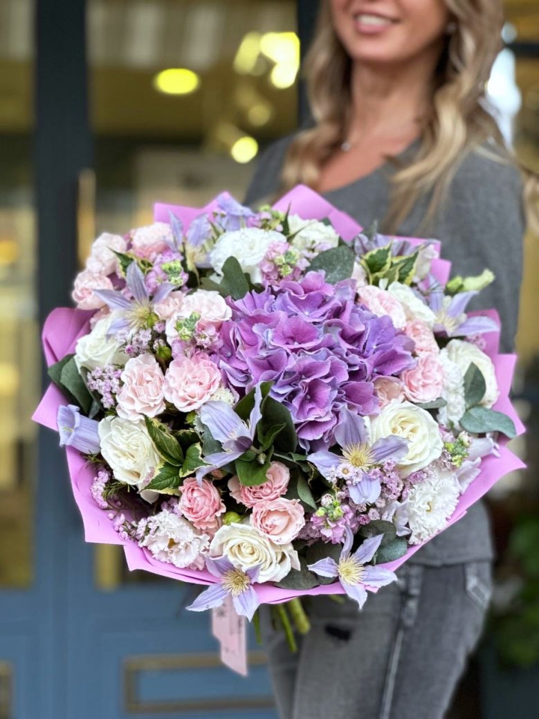1. Каждый букет уникален и имеет сезонность, поэтому он может отличаться от того, который вы видите на картинке. Мы можем создать композицию в подобном стиле и цвете.