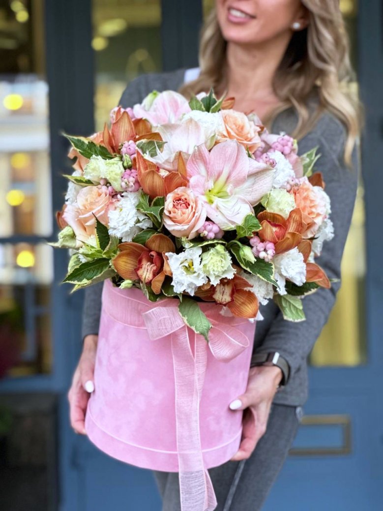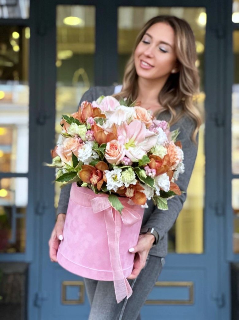 1. Каждый букет уникален и имеет сезонность, поэтому он может отличаться от того, который вы видите на картинке. Мы можем создать композицию в подобном стиле и цвете.