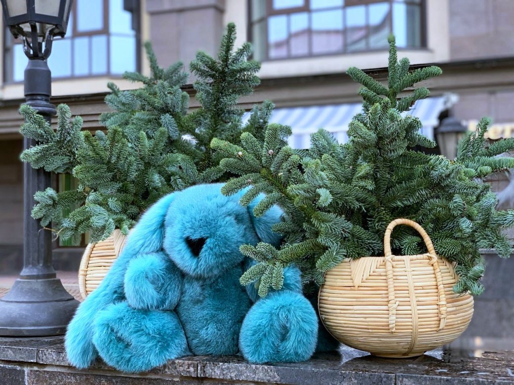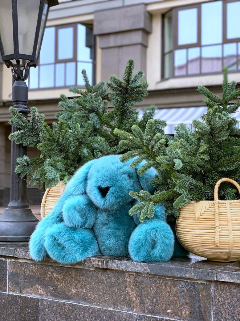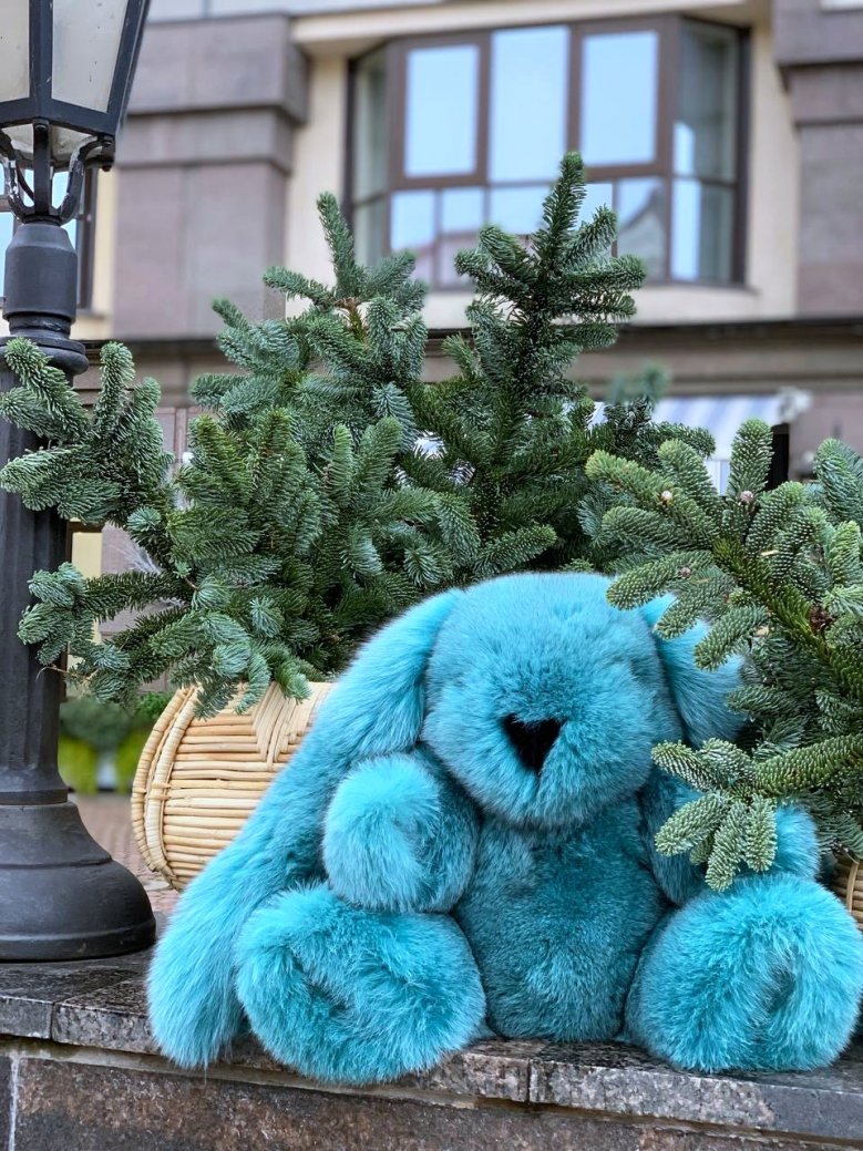 Зайчик из натурального меха (бирюза) Вы можете заказать на сайте салона Цветочное изобилие. Цена 70 000 руб.