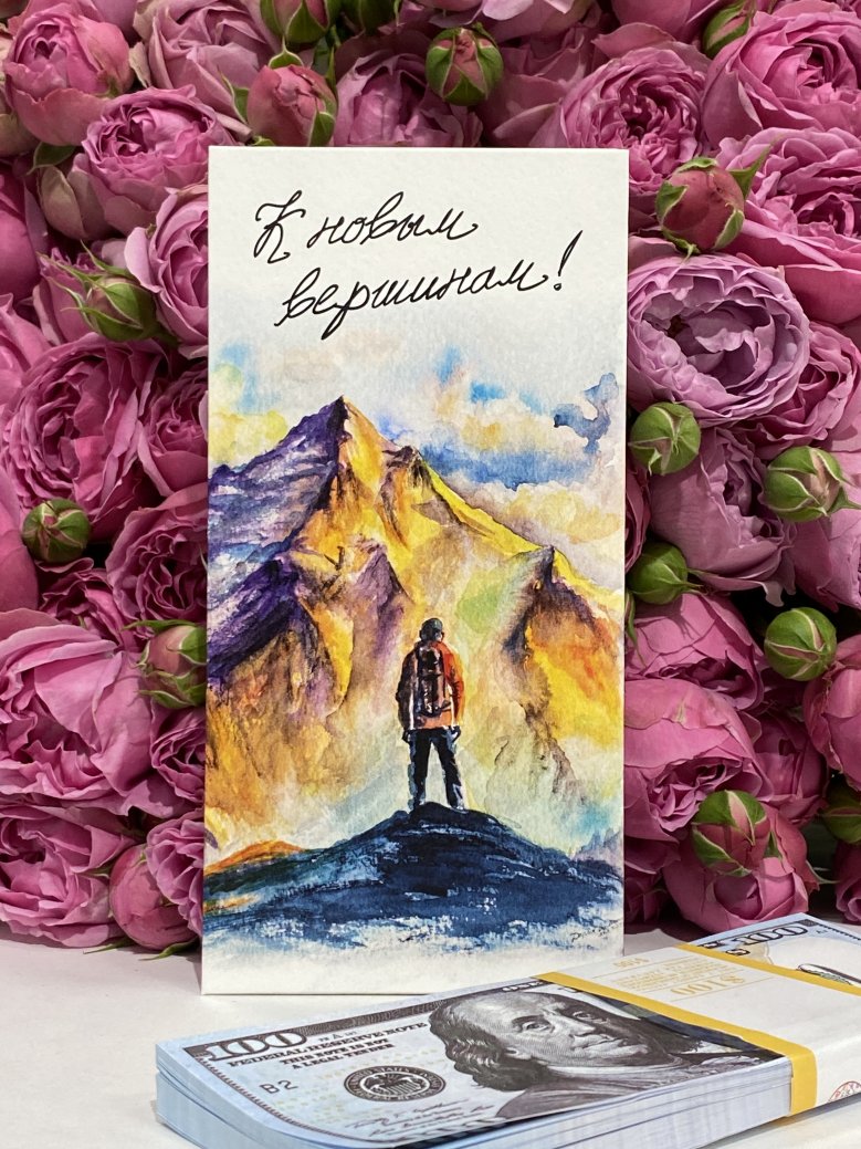 Конверт для денег «К новым вершинам» Вы можете заказать на сайте салона Цветочное изобилие. Цена 400 руб.