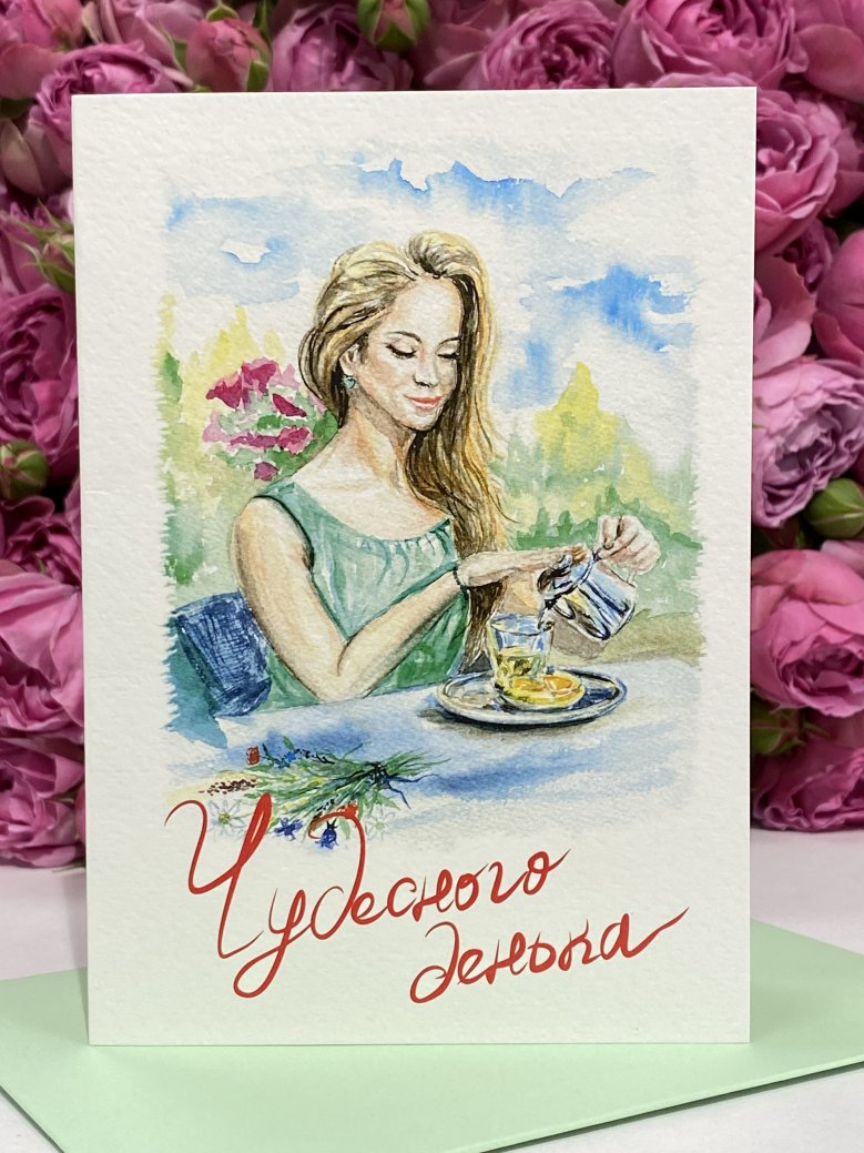 Открытка авторская с конвертом «Чудесного денька» Вы можете заказать на сайте салона Цветочное изобилие. Цена 400 руб.