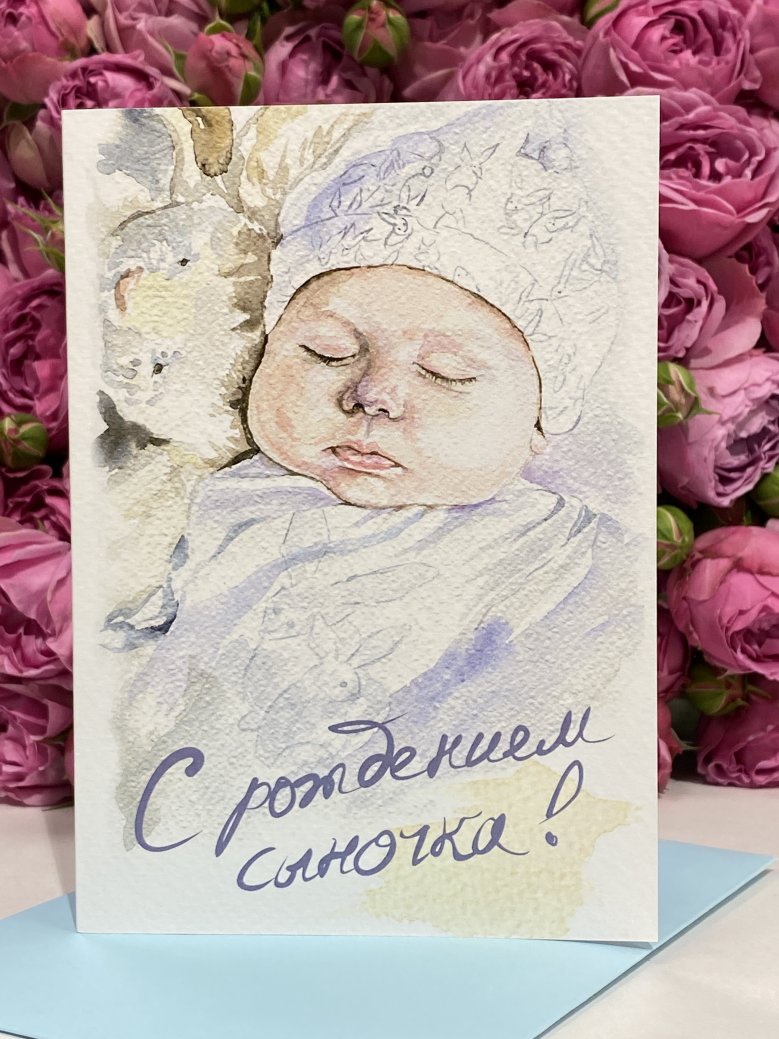 Открытка авторская с конвертом «С рождением сыночка» Вы можете заказать на сайте салона Цветочное изобилие. Цена 400 руб.