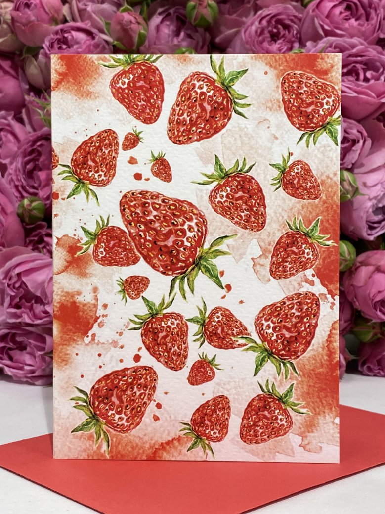 Открытка авторская с конвертом «Земляника» Вы можете заказать на сайте салона Цветочное изобилие. Цена 400 руб.