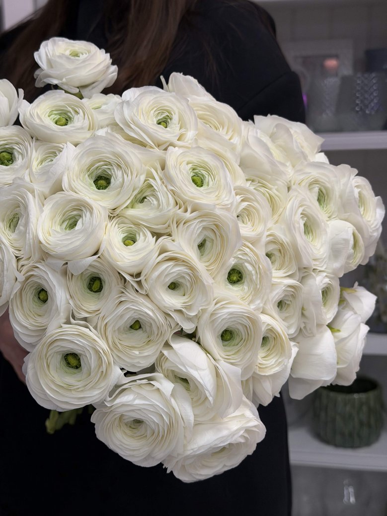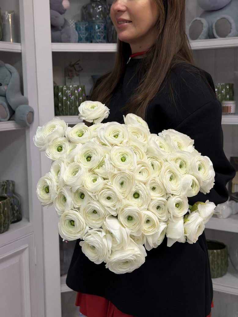 Букет из 51 белых итальянских ранункулюсов