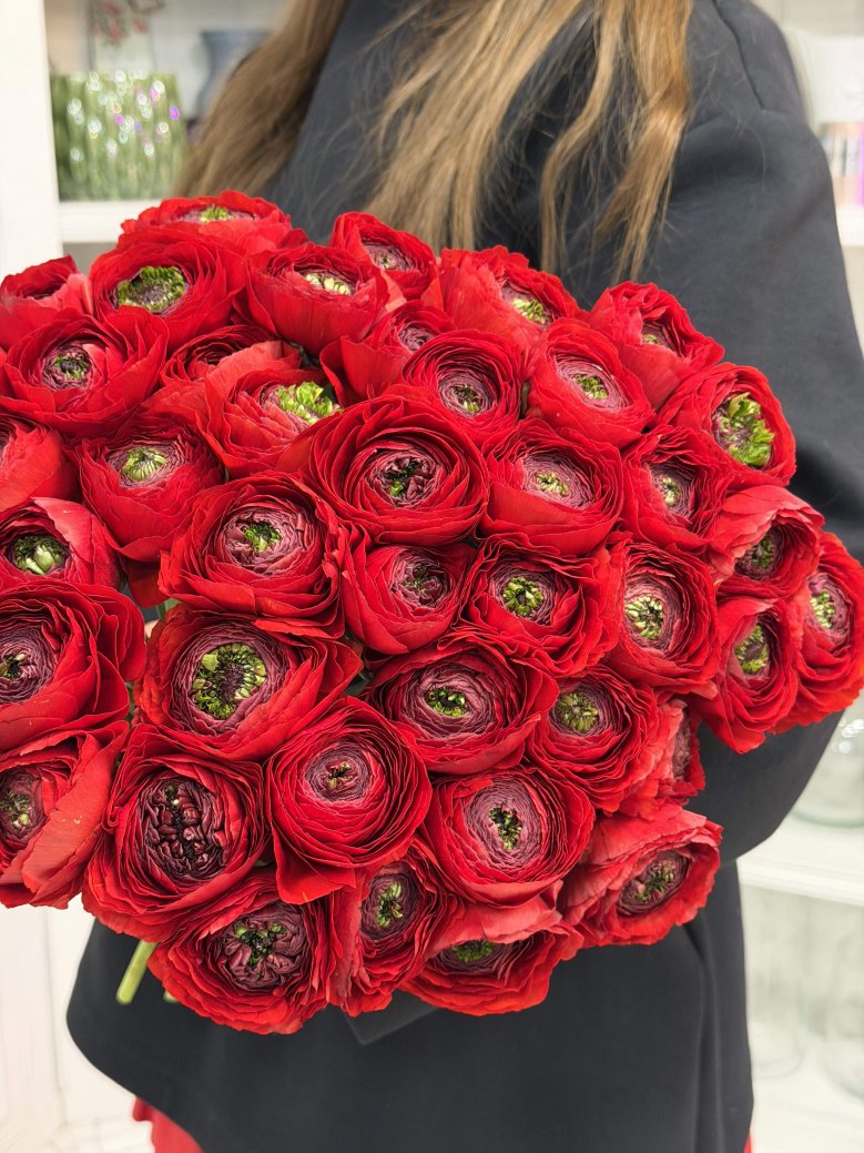 Букет из 51 красных итальянских ранункулюсов