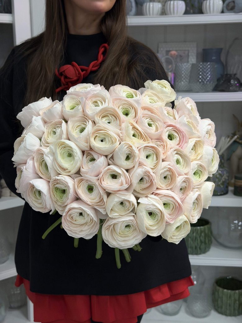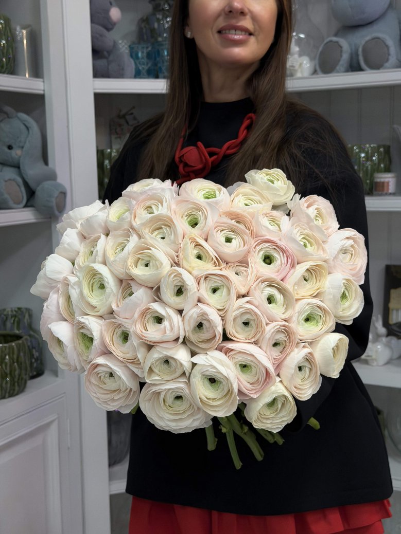 Букет из 51 нежно-розовых итальянских ранункулюсов