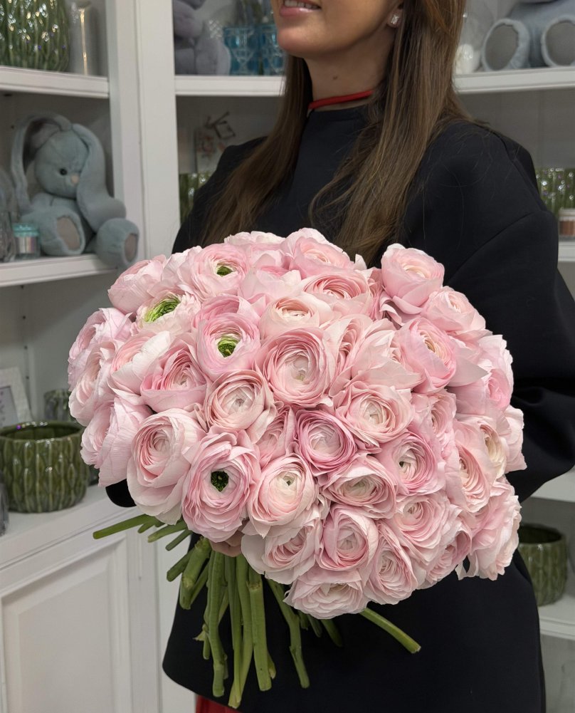 Букет из 51 розовых итальянских ранункулюсов Вы можете заказать на сайте салона Цветочное изобилие. Цена 46 800 руб. В составе букета только свежие цветы, которые не завянут через несколько дней. Все цветочные композиции, представленные на сайте, являются авторскими. Каждый букет мы собираем учитывая все Ваши пожелания.