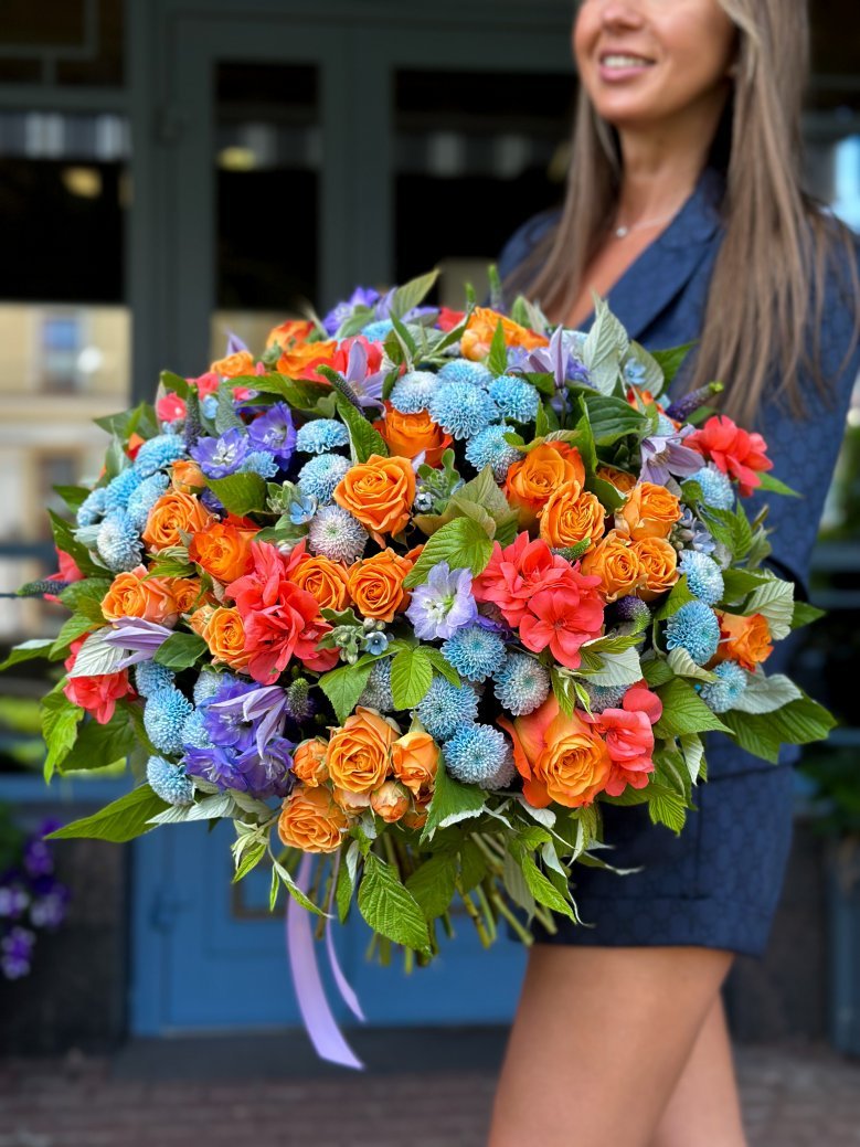 1. Каждый букет уникален и имеет сезонность, поэтому он может отличаться от того, который вы видите на картинке. Мы можем создать композицию в подобном стиле и цвете.