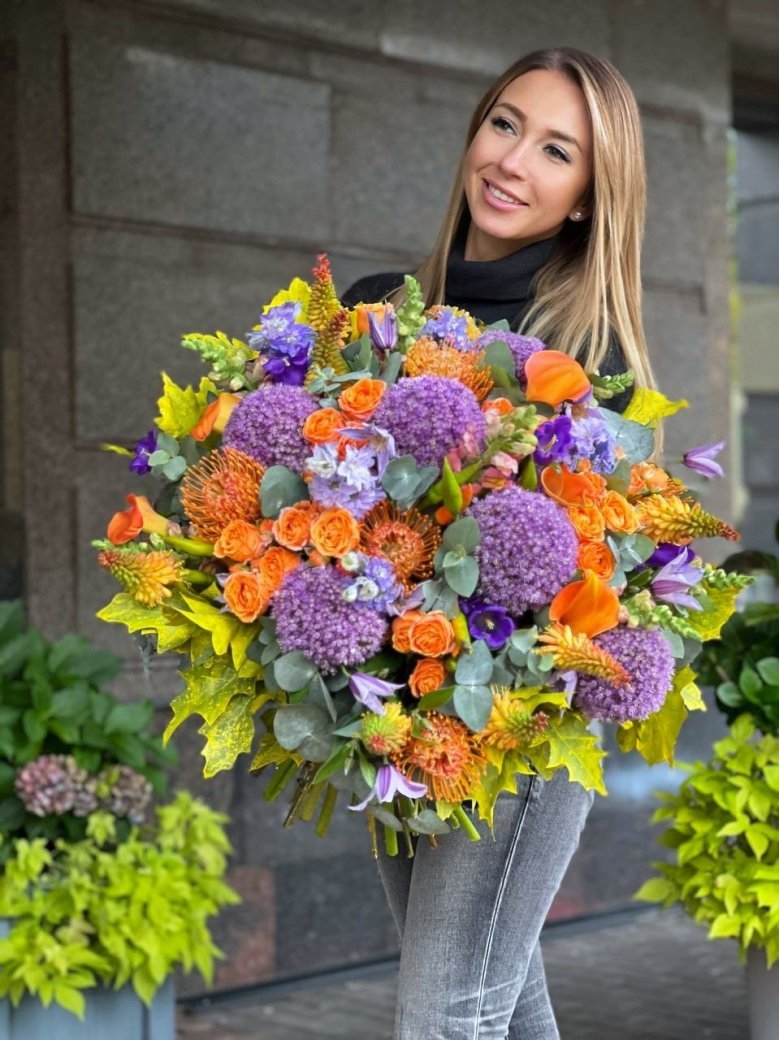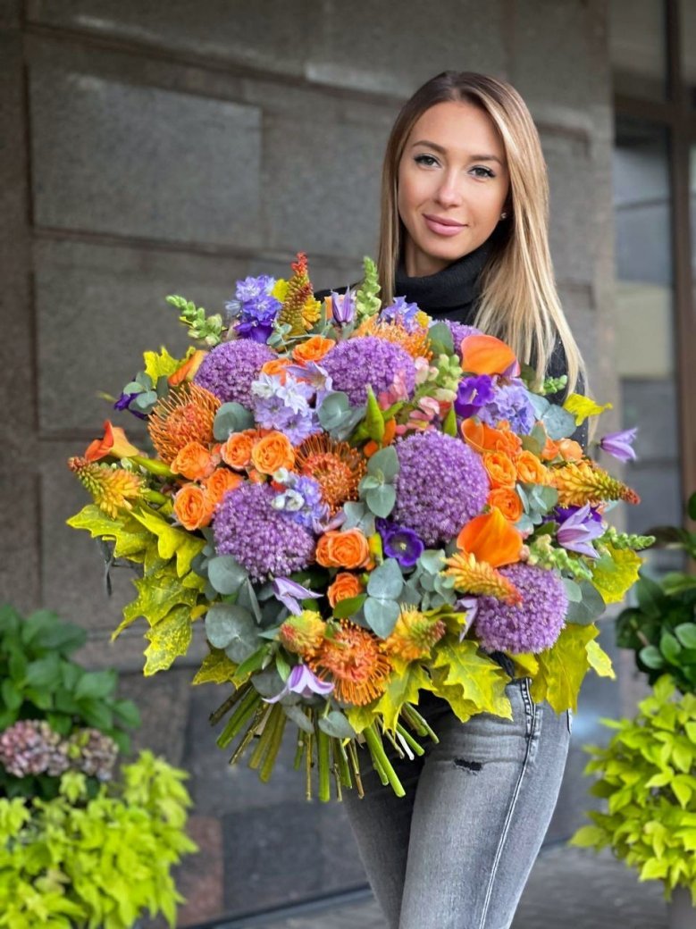 1. Каждый букет уникален и имеет сезонность, поэтому он может отличаться от того, который вы видите на картинке. Мы можем создать композицию в подобном стиле и цвете.