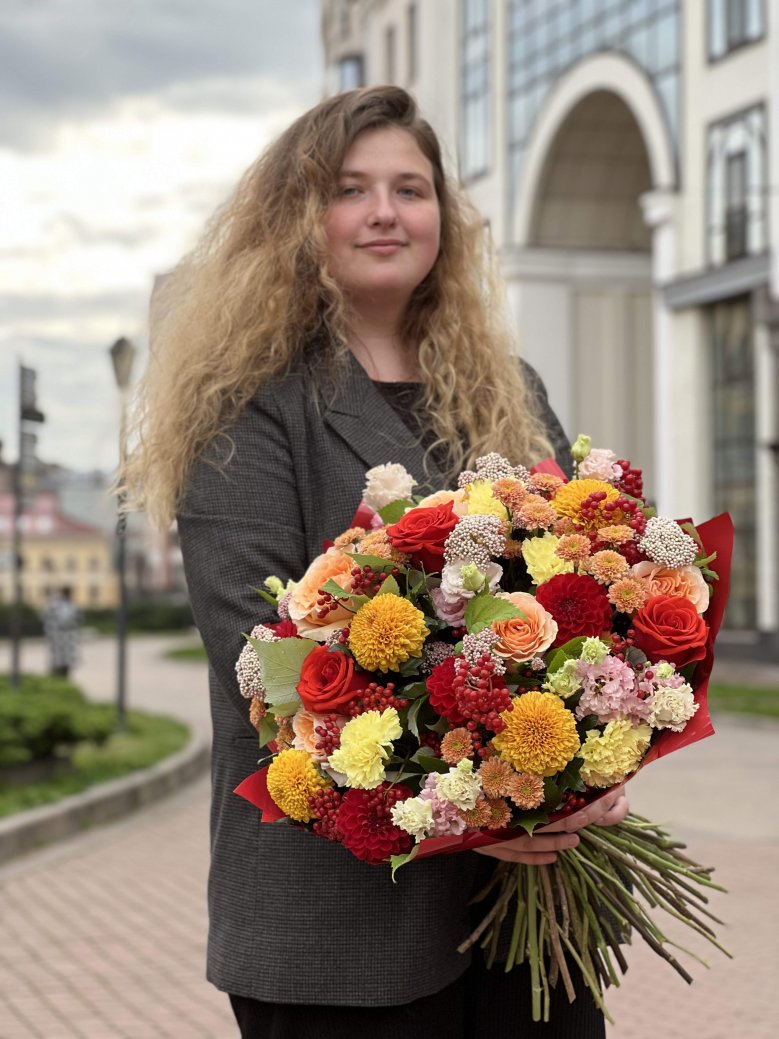 1. Каждый букет уникален и имеет сезонность, поэтому он может отличаться от того, который вы видите на картинке. Мы можем создать композицию в подобном стиле и цвете.