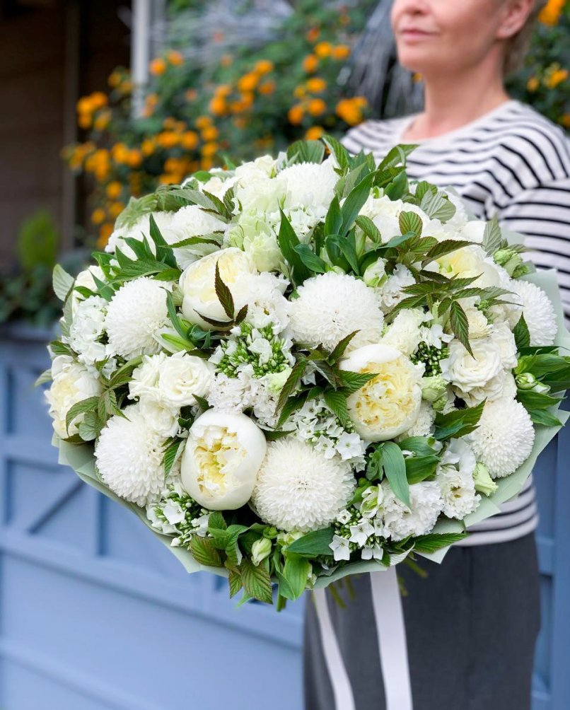 Букет цветов — пионы, садовые розы и хризантемы Вы можете заказать на сайте салона Цветочное изобилие. Цена 17 500 руб. В составе букета только свежие цветы, которые не завянут через несколько дней. Все цветочные композиции, представленные на сайте, являются авторскими. Каждый букет мы собираем учитывая все Ваши пожелания.
