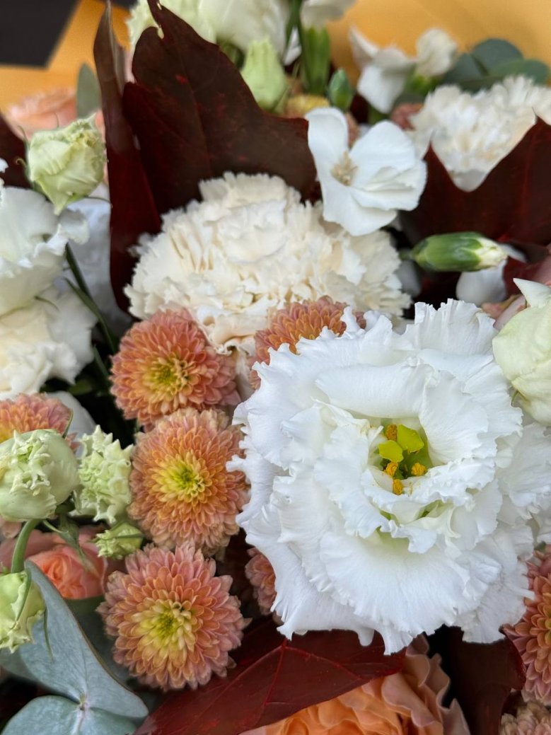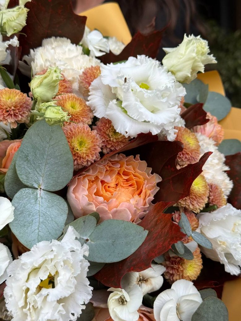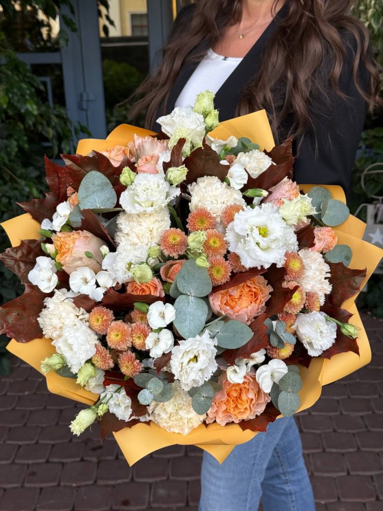 1. Каждый букет уникален и имеет сезонность, поэтому он может отличаться от того, который вы видите на картинке. Мы можем создать композицию в подобном стиле и цвете.