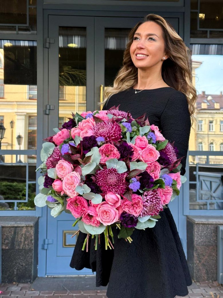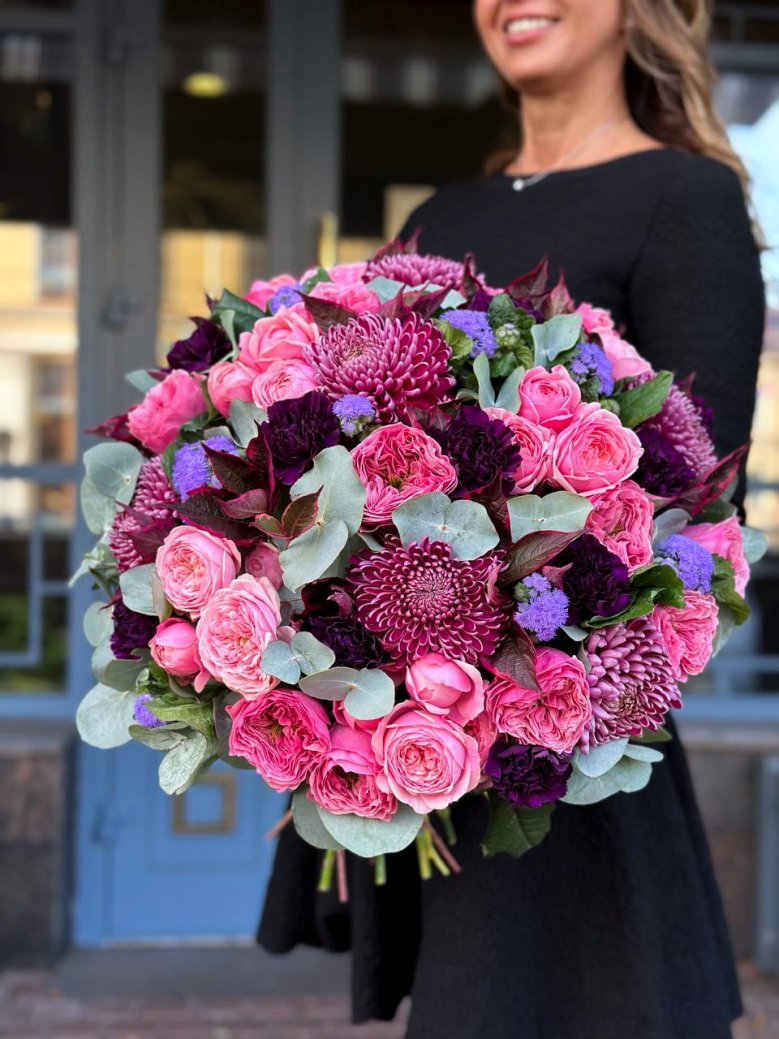 1. Каждый букет уникален и имеет сезонность, поэтому он может отличаться от того, который вы видите на картинке. Мы можем создать композицию в подобном стиле и цвете.