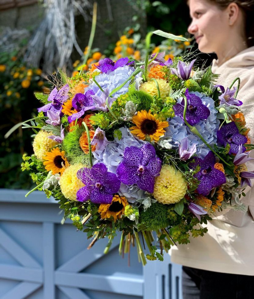 Состав: подсолнух, георгин, гортензия и орхидея