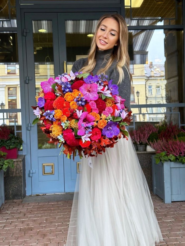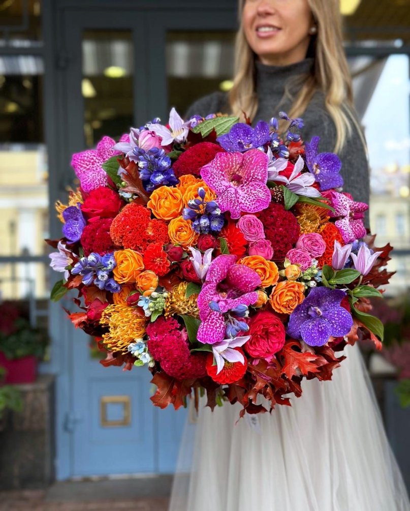 1. Каждый букет уникален и имеет сезонность, поэтому он может отличаться от того, который вы видите на картинке. Мы можем создать композицию в подобном стиле и цвете.