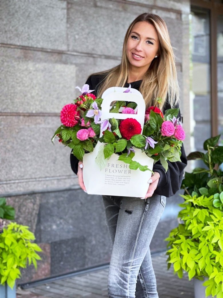 1. Каждый букет уникален и имеет сезонность, поэтому он может отличаться от того, который вы видите на картинке. Мы можем создать композицию в подобном стиле и цвете.