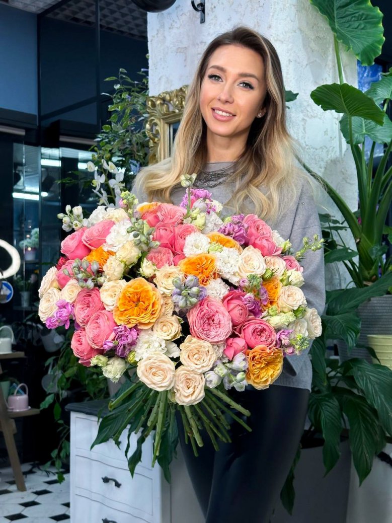 2. Есть сезонные букеты, которых может не быть в наличии, после совершения заказа менеджер с вами связывается и сообщает вам о наличии тех или иных цветов.