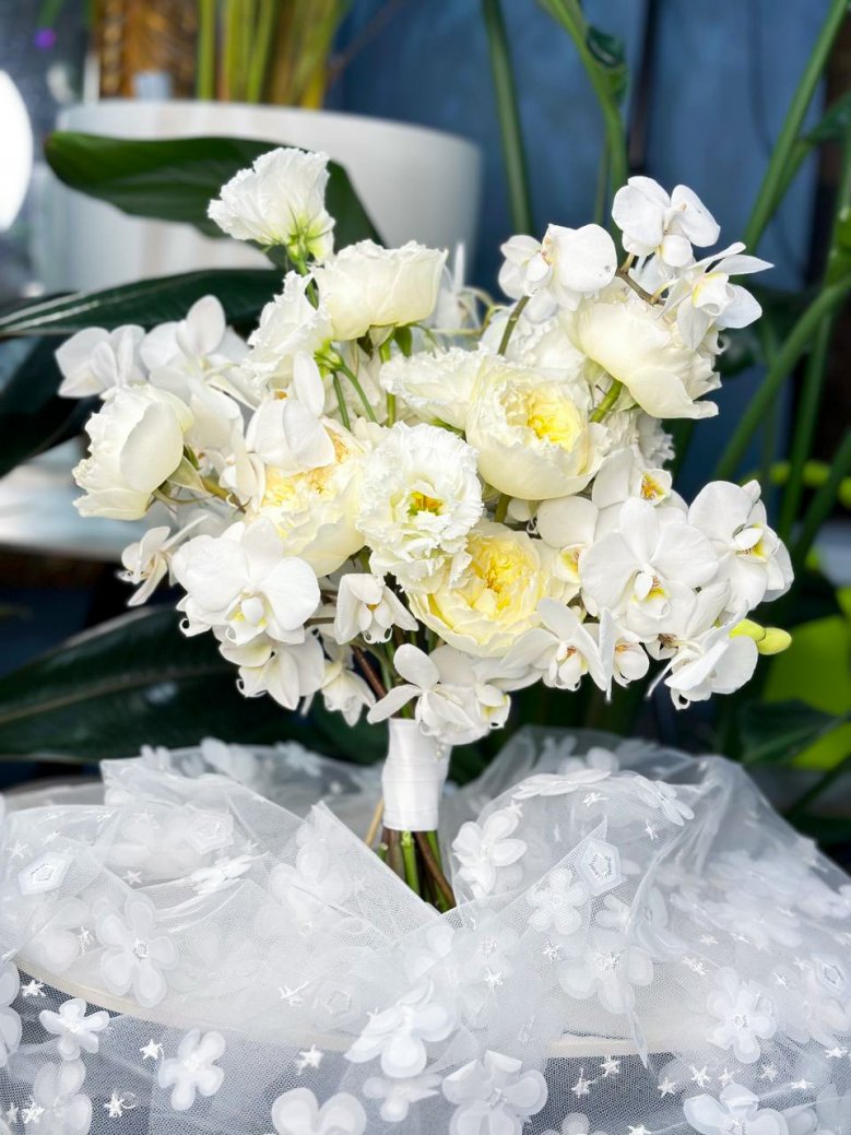 Букет невесты — нежнейшие орхидеи, садовые розы и эустомы