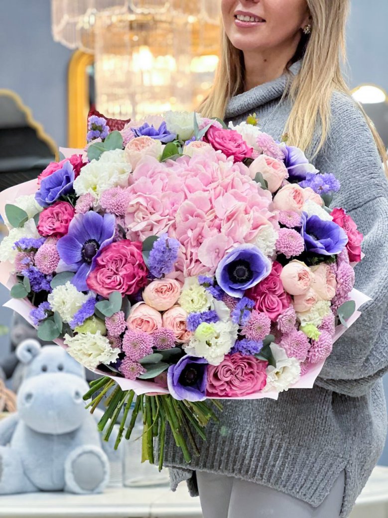 1. Каждый букет уникален и имеет сезонность, поэтому он может отличаться от того, который вы видите на картинке. Мы можем создать композицию в подобном стиле и цвете.