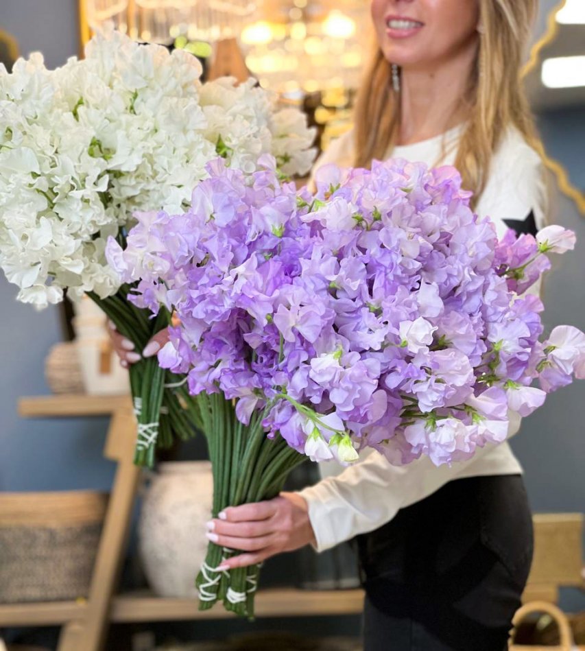 Букет цветов — латирусы белые и сиреневые (50 шт)