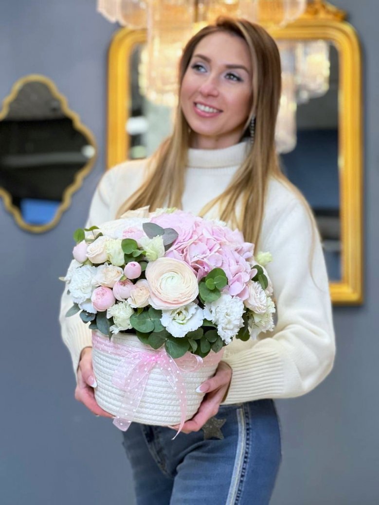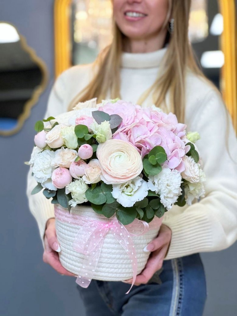 Flower box — гортензия, ранункулюсы и пионовидные розы