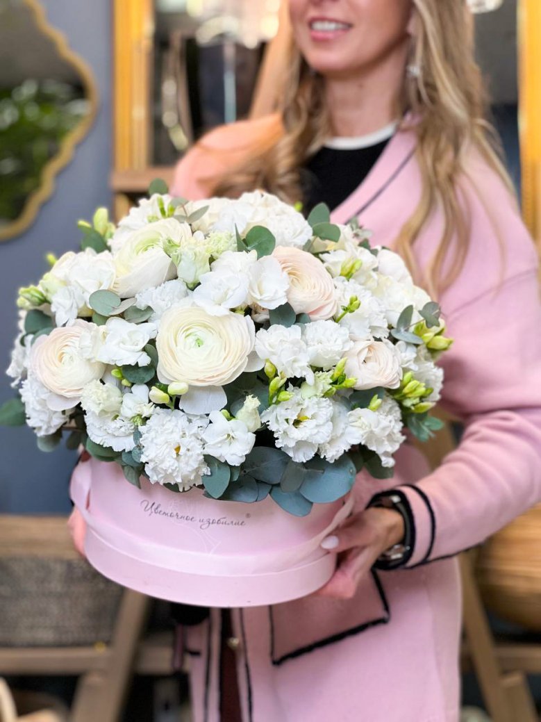 1. Каждый букет уникален и имеет сезонность, поэтому он может отличаться от того, который вы видите на картинке. Мы можем создать композицию в подобном стиле и цвете.